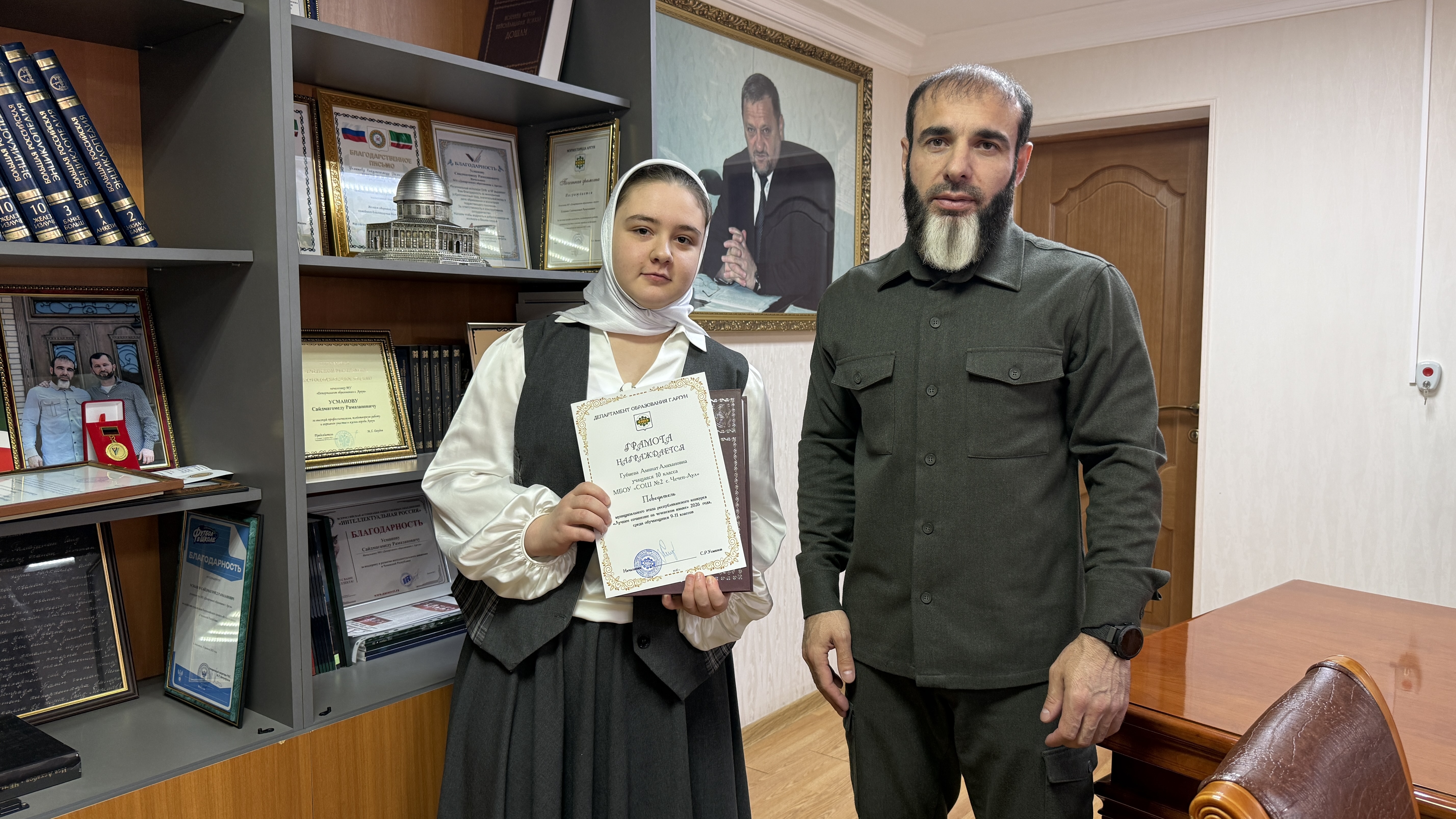 В Департаменте образования г. Аргун состоялась торжественная церемония награждения победителей и призеров муниципальных этапов различных конкурсов по различным учебным направлениям, в том числе «Знаток чеченского языка» и «Лучшее сочинение по ...