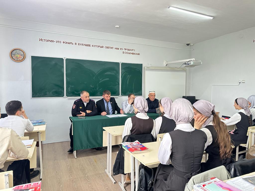 В МБОУ «СОШ №6 г. Шали» 16.03.2023 года прошла встреча учащихся 9 классов с ведущим специалистом по делам несовершеннолетних, ответственным секретарем КДН и ЗП Дагаровым Ибрагимом Абуевичем и лейтенантом полиции, инспектором ОПДН ОУУП и ПДН ОМВД России по Шалинскому району Вагаповым Валидом Виситаевичем.