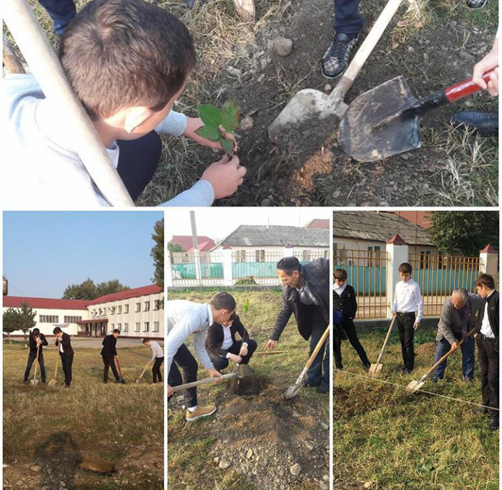Производственная бригада работает на пришкольном учебно-опытном участке.