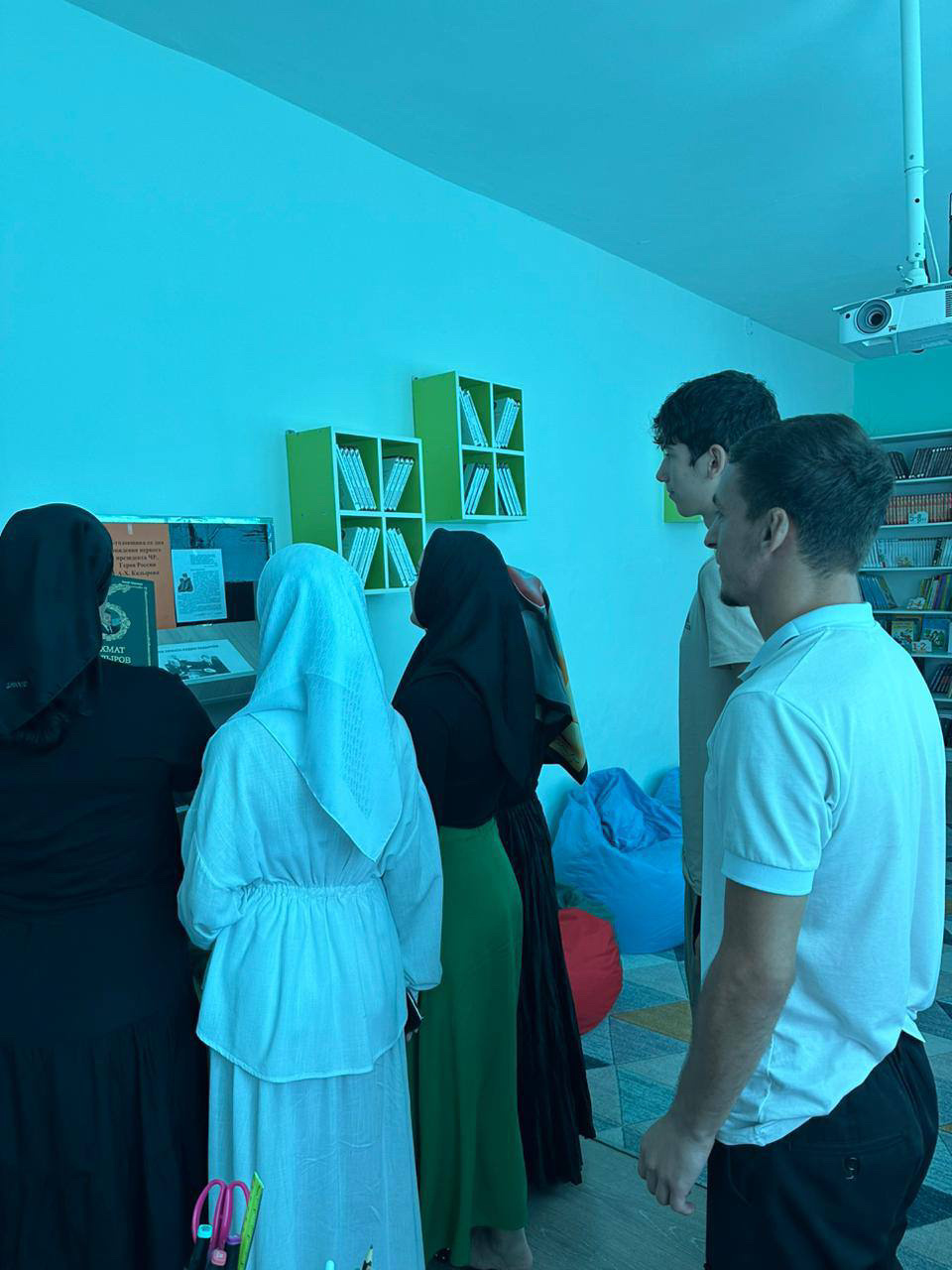 Заведующая библиотекой Абубакирова Ф.Б. рассказала учащимся о годах жизни Ахмат-Хаджи Кадырова, о его героических подвигах. Учащиеся узнали много интересного о значимых событиях в жизни А-Х. Кадырова, его роли в политике и истории России, а также о его наследии для будущих поколений.