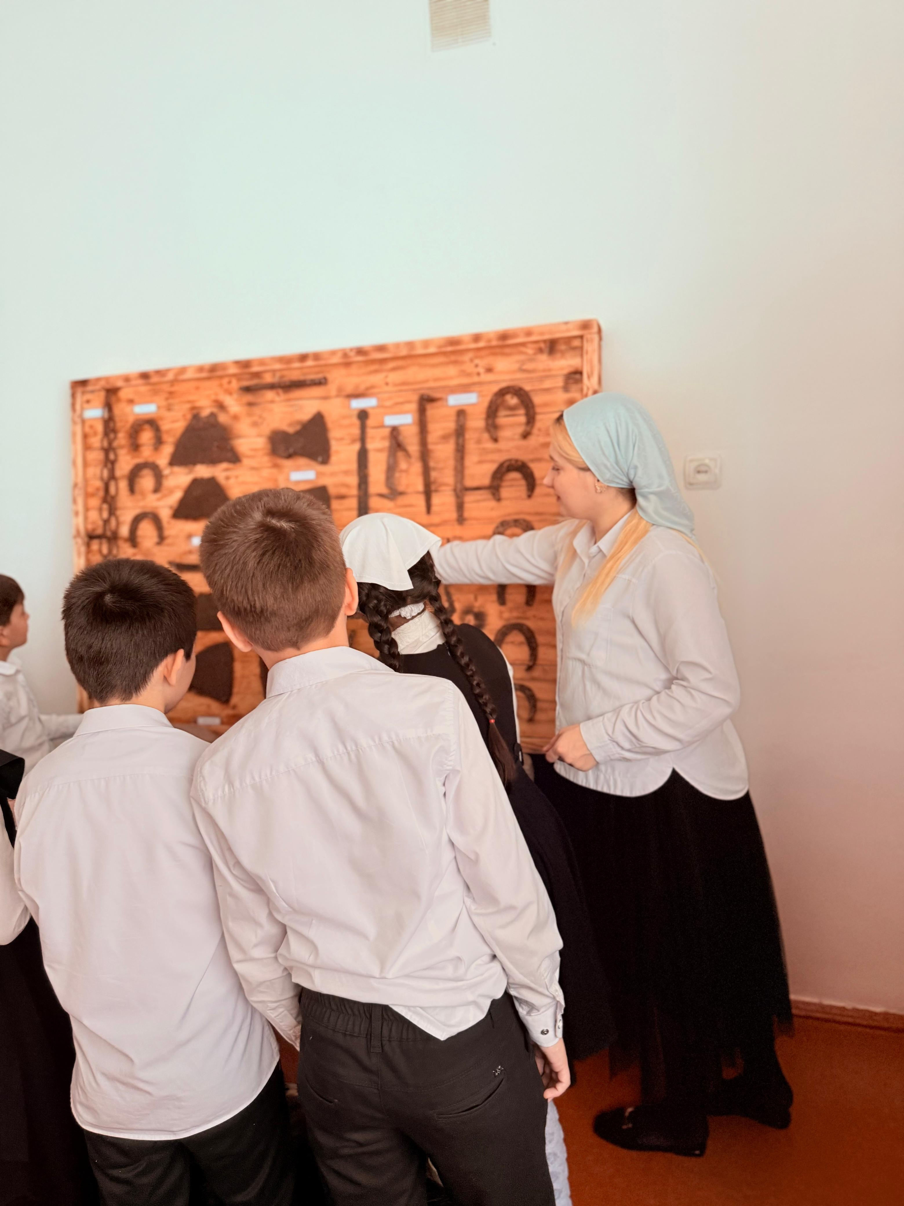 Выставка «Орудия труда чеченцев в старину» прошла в школьном этнографическом музее. На выставке были представлены разные рабочие инструменты, использовавшиеся чеченцами в старину, к которым относятся ч1ода (ножницы для стрижки овец), мангал (коса), марс (серп), метиг (мотыга) и. т.д.