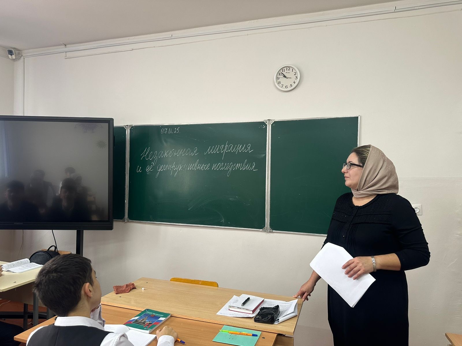Сотрудником ФСБ отдела Шалинского района проведено профилактическое мероприятие в МБОУ «СОШ N6 г.Шали» на тему: «Незаконная миграция и её деструктивные последствия»