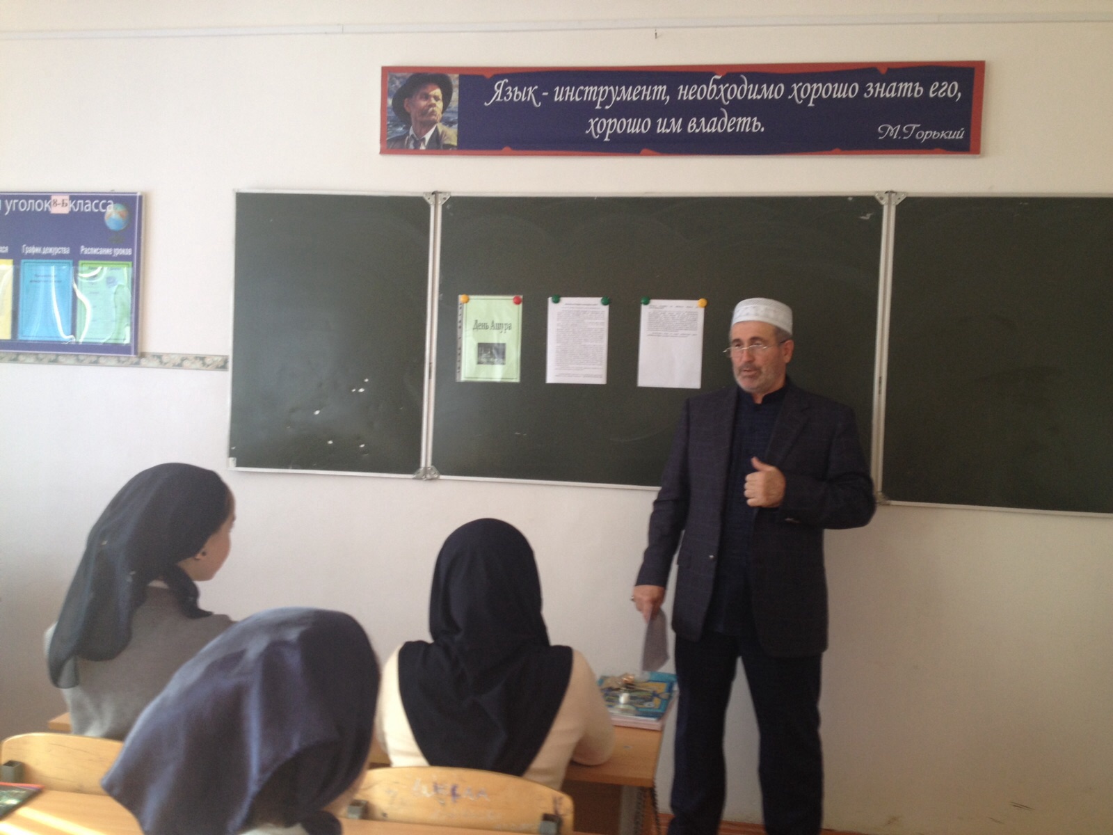 Хаджимурадов рассказал учащимся о том, что День Ашура - это один из священных для ислама праздников. Его еще называют Днем пророков, так как именно в десятый день месяца Мухаррам, то есть день Ашура, родился Пророк Ибрахим, на небо был вознесен Пророк Иса, спасся от преследования фараона Пророк Муса, корабль Пророка Нуха причалил к горе после всемирного потопа. В день праздника, предыдущий и последующий дни мусульманам желательно поститься и совершать благие деяния. «Соблюдать нормы ислама – это прямая обязанность каждого верующего. Хотя пост в эти дни не является фардом, желательно держать его три дня подряд. Желательно в эти дни читать Коран, раздавать милостыню», отметил Абдул-Хамид. Учащиеся с большим вниманием и интересом слушали педагога. Задавали вопросы. Беседы были продуктивными и познавательными. Проведенные мероприятия способствовали религиозному и нравственному воспитанию учащейся молодежи.