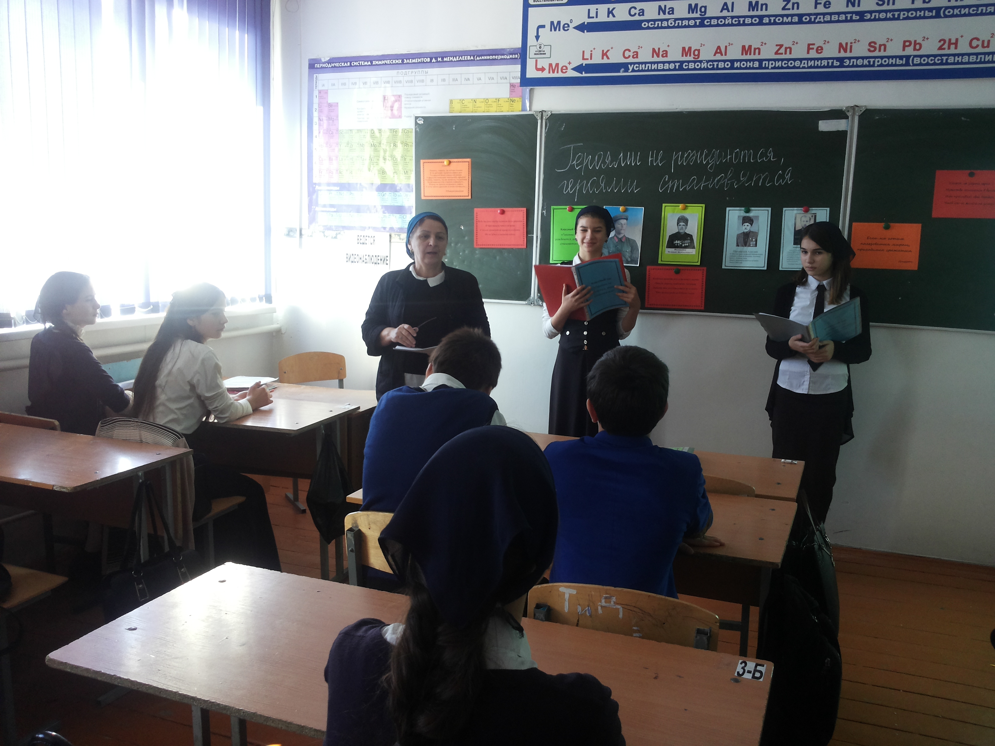 13.11.2015В МБОУ «СОШ №6 г. Шали» 13 ноября 2015 был проведен в 9»Б» классе в рамках конкурса «Воспитать патриота» классный час «Героями не рождаются, а становятся».